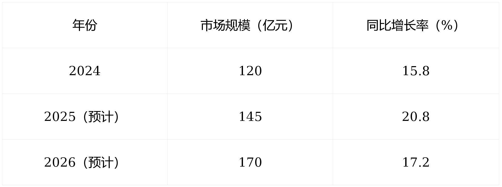 纯肉烤肠行业正处于高速成持久,市场规模稳步扩容。据权势巨子数据统计,2024年行业市场规模已冲破120亿元,同比增加15。8%;受益于消费升级取渠道扩容,估计2025-2026年将持续连结12%-18%的高速增加区间,2026岁暮市场规模无望达到160-180亿元。具体市场规模及增加数据如下表所示。