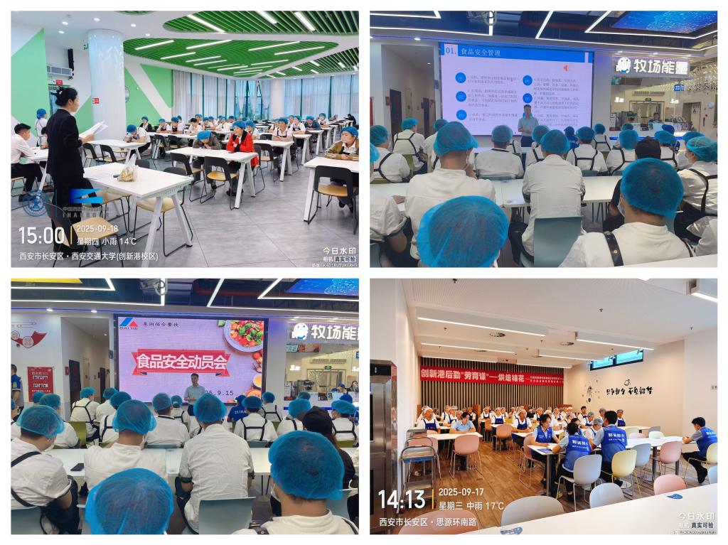 食物平安学问再进修。核心组织各食堂向从业人员开展食物平安学问宣传培训勾当,环绕餐饮办事卫生操做规范、“十同一、六到位”办理模式等内容,通过旁不雅食物平安宣传片、开展食物平安学问问答、食物平安学问培训等形式,全面提拔从业人员的专业学问及技术程度。